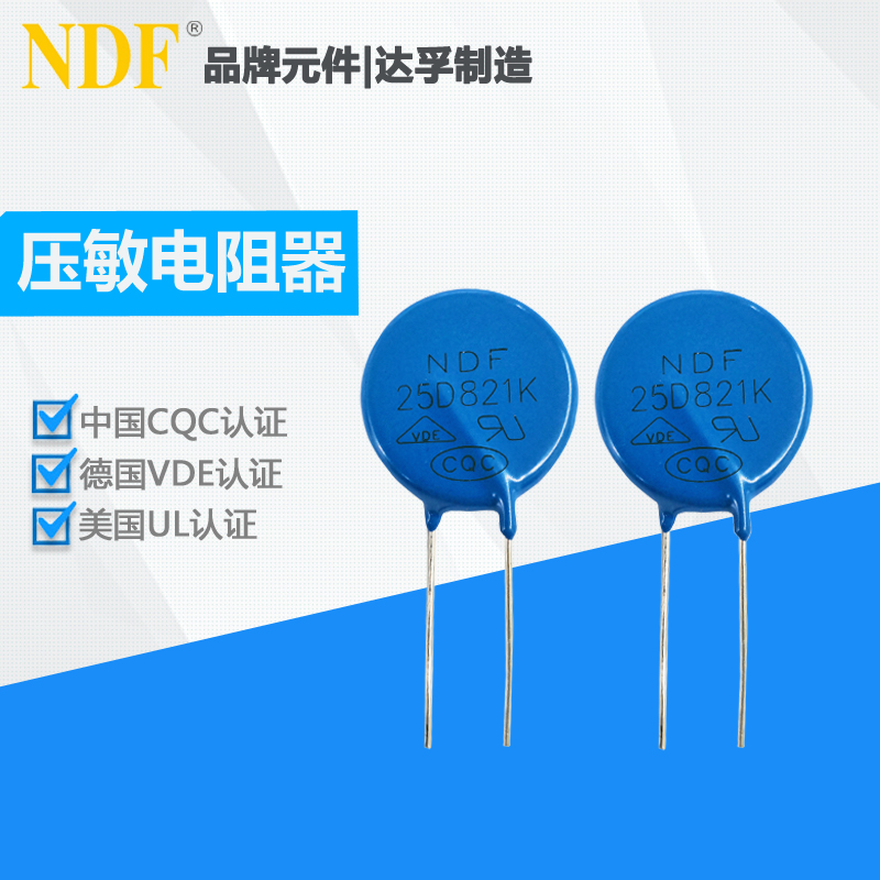 ?????? 壓敏電阻是電壓敏感電阻器的簡稱,是一種非線性電阻元件。壓敏電阻阻值與兩端施加的電壓大小有關,當加到壓敏電阻器上的電壓在其標稱值以內時,電阻器的阻值呈現無窮大狀態,幾乎無電流通過。當壓敏電阻器兩端的電壓略大于標稱電壓時,壓敏電阻迅速擊穿導通,其阻值很快下降,使電阻器處于導通狀態。當電壓減小至標稱電壓以下時,其阻值又開始增加,壓敏電阻又恢復為高阻狀態。當壓敏電阻器兩端的電壓超過其大限制電壓時,它將完全擊穿損壞,無法自行恢復。